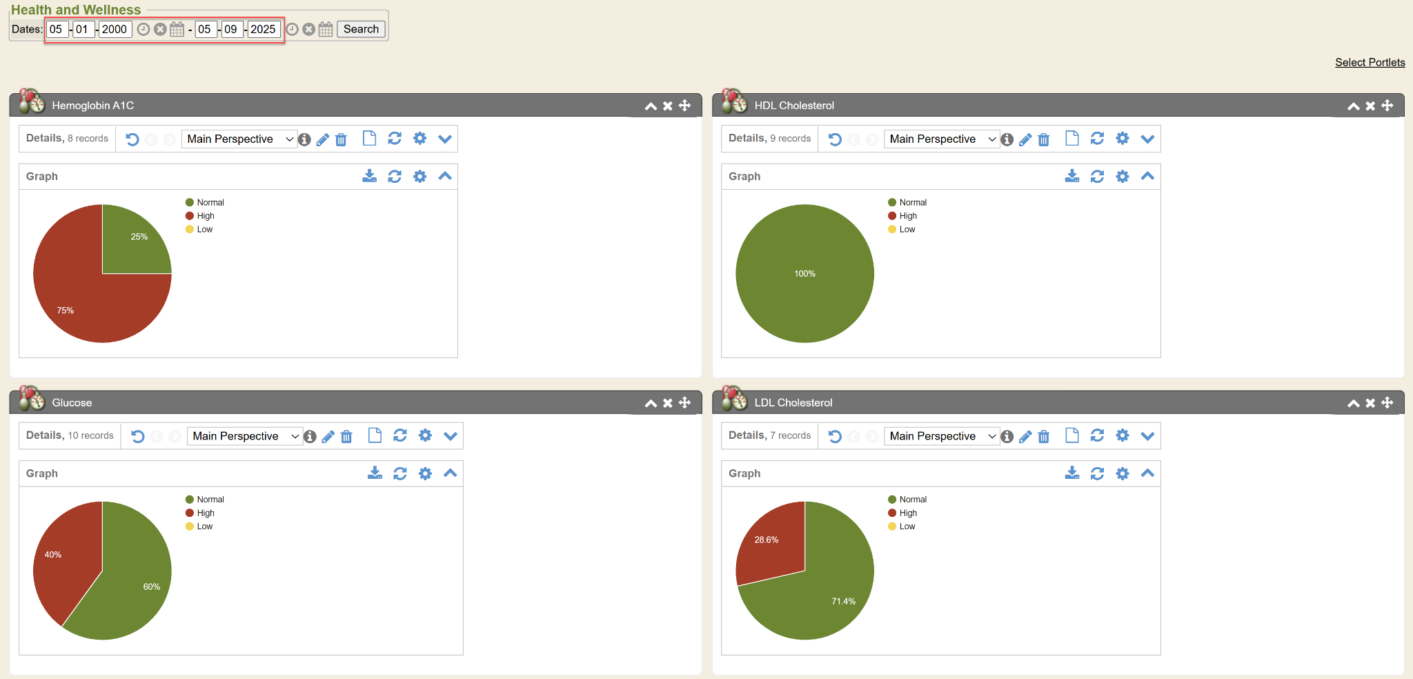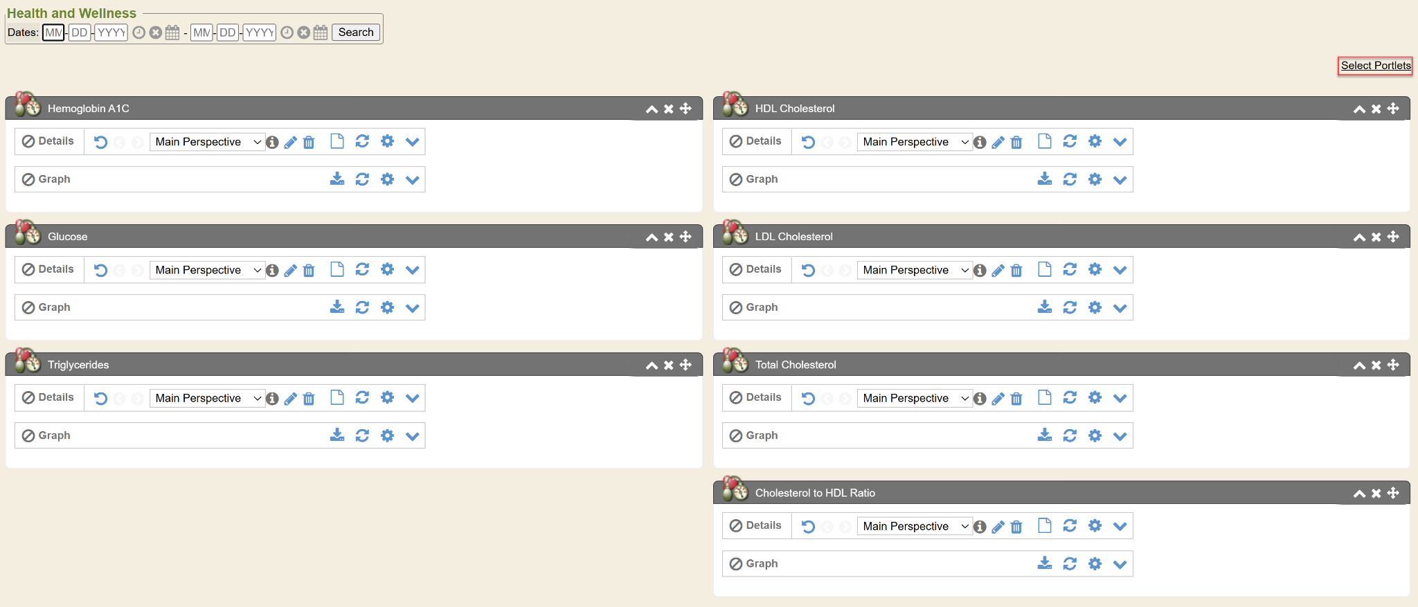 To select what portlets display, click the Select Portlets hyperlink.