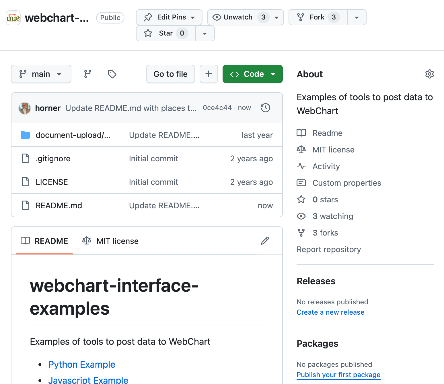 Other examples can be found here: https://github.com/mieweb/webchart-interface-examples
